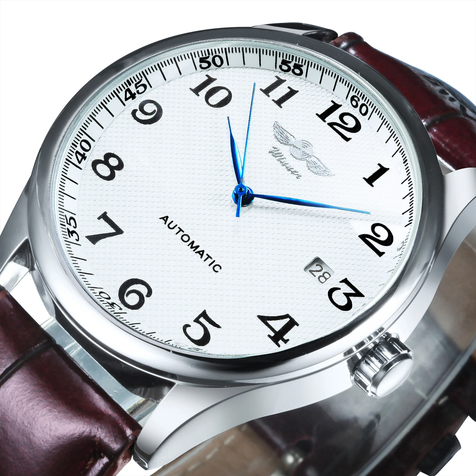 Name: Reloj mecánico automático de negocios para hombre, con correa de cuero maestro de tiempo, esfera blanca, calendario, fecha, clásico