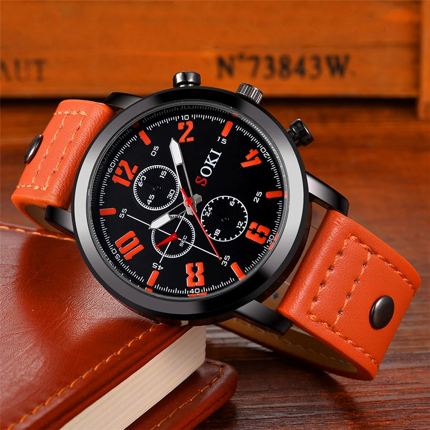 Name: SOKI-Reloj de pulsera deportivo para Hombre, de cuarzo y cuero, de lujo, a la moda, 2018