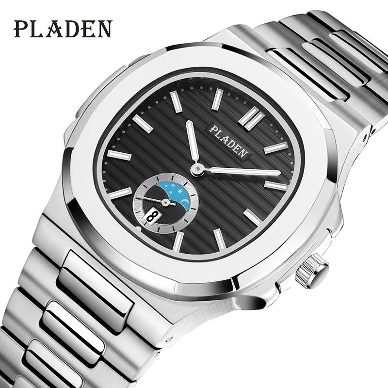 Congénere que las imágenes. Debido a PLADEN FACTORY Store conveniencia este Relojes de lujo modernos con estilo para hombre, reloj de pulsera de acero inoxidable 316L con movimiento de cuarzo de alta calidad y fecha automática